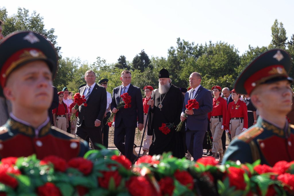 Глава донского региона Юрий Слюсарь принял участие в церемонии возложения гирлянды Славы и цветов к мемориальному комплексу в Змиевской балке Ростова-на-Дону, где 83 года назад произошёл массовый расстрел мирных граждан.