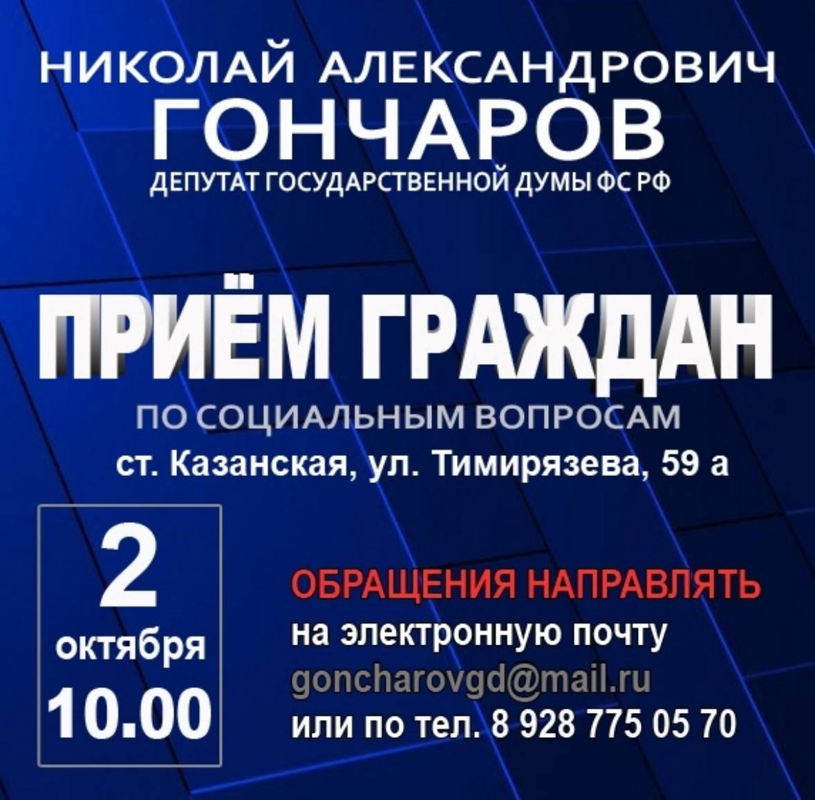 В ст.Казанской проведет прием депутат Госдумы Н.Гончаров