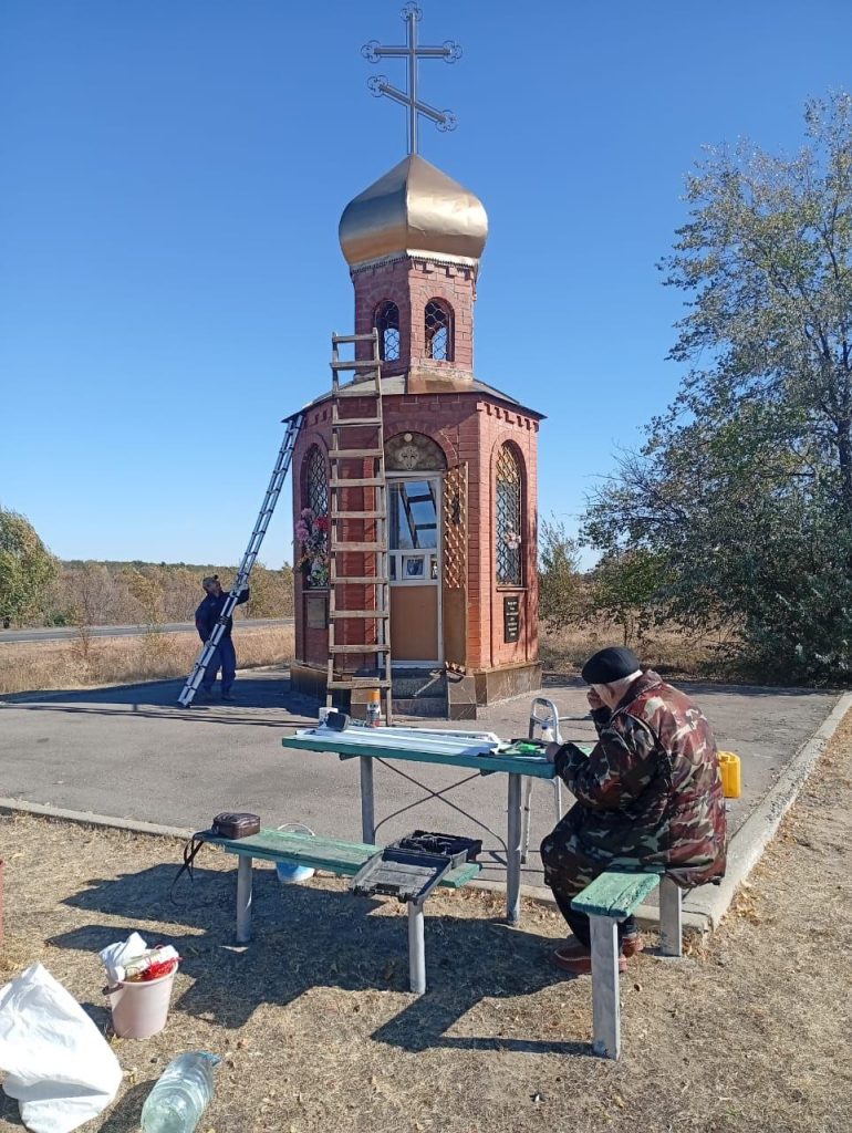 Немало денежных средств и физических сил в возведение и содержание святого места вложил Михаил Иванович Топольсков. Но активисту и бывшему военному Михаилу Ивановичу идет 85 год и в силу состояния здоровья он больше не может лично принимать участие в работах по благоустройству территории. Ему на помощь пришли казаки Верхнедонского юрта и взяли шефство по уходу за часовней. В октябре казаками С.Минаевым, О.Мукониным и Н,Кирсановым был произведен косметический ремонт святого места: замазаны трещины на стенах, покрашены купола, обкошена территория вокруг.