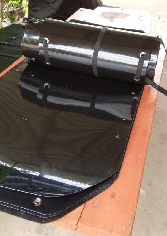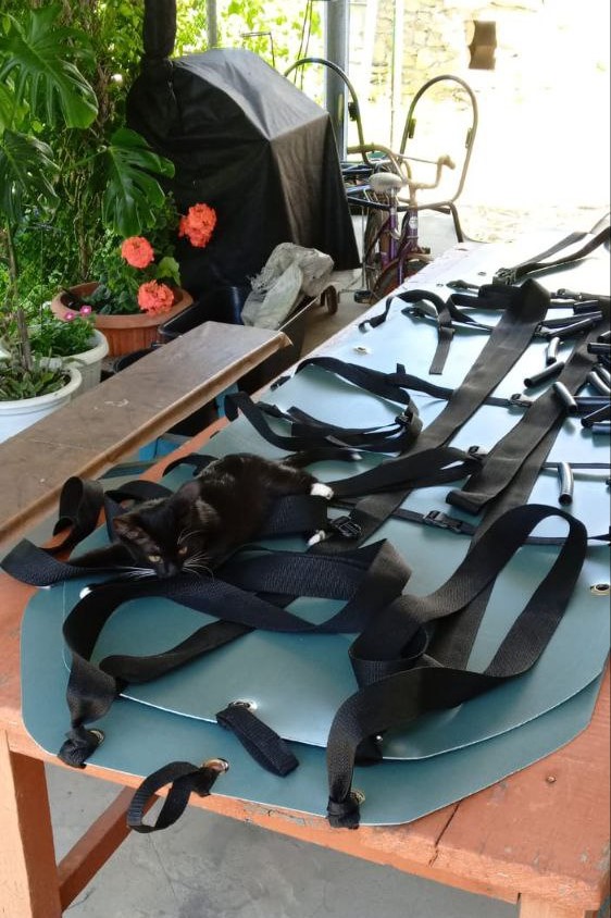 Преимущество волокуши заключается в том, что она изготавливается из пластика, легко скручивается в рулон для удобства переноса и имеет небольшой вес. Сначала из пластика низкого давления толщиной 2 мл, который волонтер заказывает в Ростове, изготавливается лекало по форме волокуши размером 2,30 см на 70 см. Затем крепятся специальные ремни для закрепления раненого, крепежи и ручки.