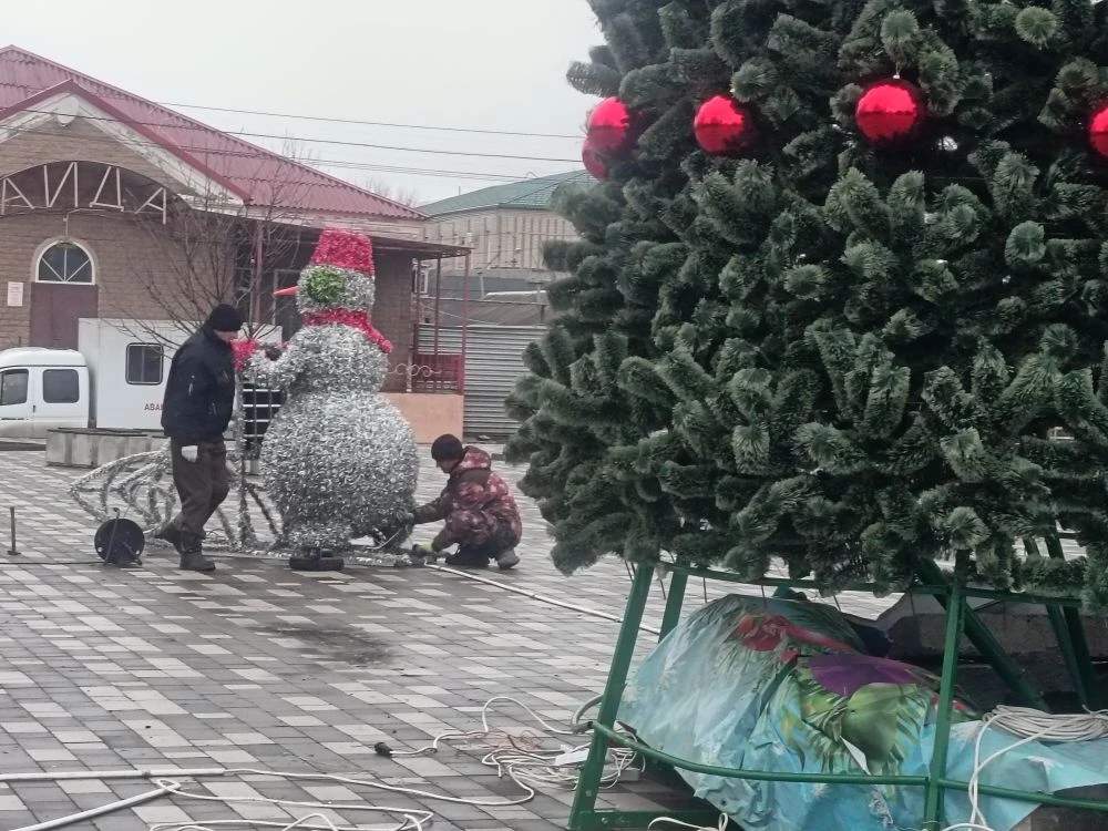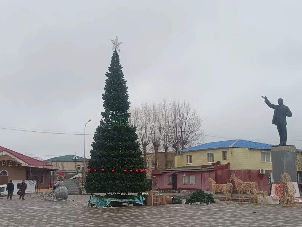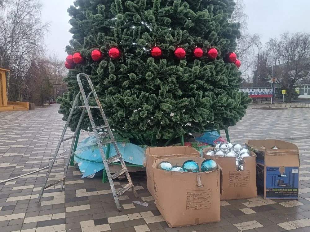 Праздник пришёл в станицу Казанскую: на главной площади устанавливают 10-метровую новогоднюю ёлку