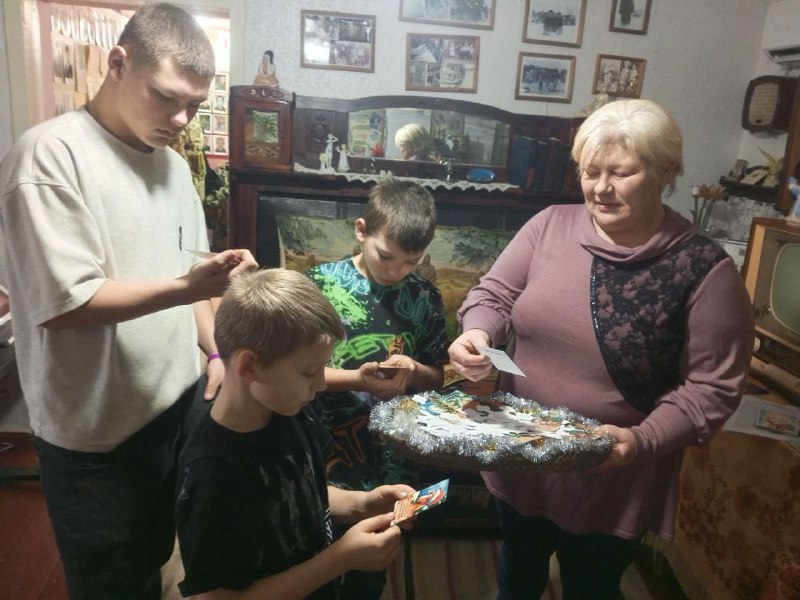 В гостях в музее семья Ермаковых-Кожечкиных из х. Тубянского. Сотрудники музея постарались сделать для первых посетителей посещение музея незабываемым, позволив немного новогоднего волшебства. Ребята и их мама Елена Евгеньевна, семья участника СВО Козырева Кирилла, побывали на выставке «Елка пахнет мандаринами», приняли участие в интерактивной программе » История страны в новогодних открытках и игрушках», вынимали из корзины предсказания своей судьбы на 2026 год.