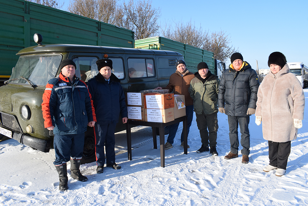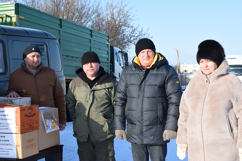 Пока шла подготовка техники, по инициативе главы администрации Мешковского сельского поселения Е. В. Сокотовой и на территории администрации был организован массовый сбор гуманитарного груза. К акции подключились сотрудники организаций, индивидуальные предприниматели, школьники, воспитанники детского сада и просто неравнодушные жители. В итоге УАЗ был загружен не только техникой, но и самым необходимым для бойцов.