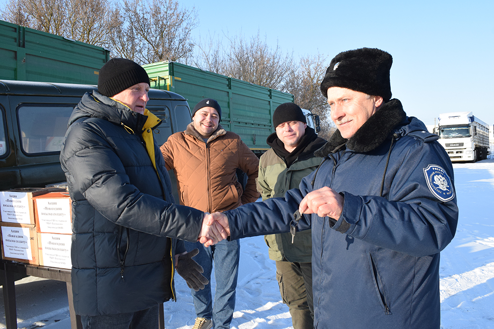 На торжественной церемонии организатор акции и председатель Верхнедонского районого Собрания депутатов Ю. Песковатсков с напутственными словами передал ключи от УАЗа волонтёру Ю.Шапошникову. В ответ волонтер Юрий Шапошников подарил организатору свою книгу «Тепло окопной свечи», написанную по впечатлениям от общения с героями в окопах.