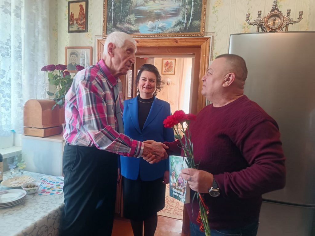 В этот знаменательный день поздравить юбиляра на дому пришли те, кто высоко ценит его вклад и заслуги. Со словами глубочайшего уважения и признательности к Григорию Захаровичу обратились глава администрации Казанского сельского поселения Л. Самолаева и председатель Совета ветеранов Верхнедонского района Г. Абакумов, которые вручили ему поздравительные адреса, подарки и букеты цветов. Также чествовать ветерана пришли и другие члены районного Совета ветеранов, создав тёплую, торжественную атмосферу. Этот визит стал не просто формальным мероприятием, а данью памяти поколению победителей и тружеников, символом преемственности и уважения к старшим.