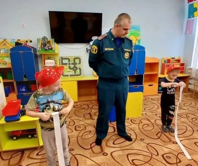 Василий Иванович не просто рассказал детям о правилах поведения при пожаре, а превратил беседу в настоящее приключение. Ребята узнали, почему нельзя играть со спичками, познакомились со средствами пожаротушения — увидели, как выглядят настоящие пожарные рукава и огнетушители. Особый восторг вызвала пожарная лестница — спецтранспорт, который помогает спасателям добираться до самых верхних этажей.