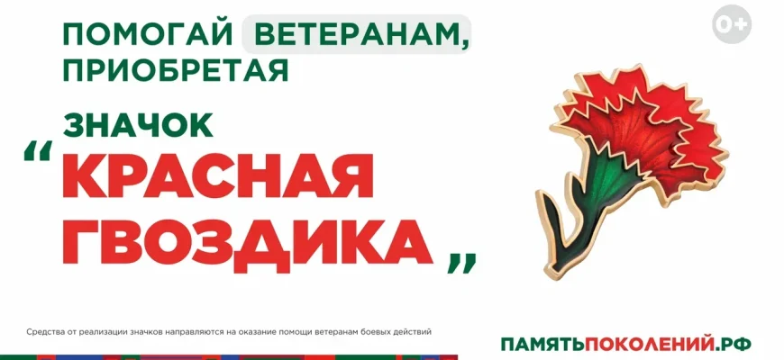С 10 апреля по 22 июня благотворительный фонд «Память поколений» в одиннадцатый раз проведет акцию «Красная гвоздика». Приобретая за пожертвование значок красной гвоздики, жители России смогут поддержать ветеранов Великой Отечественной войны и других боевых действий.
