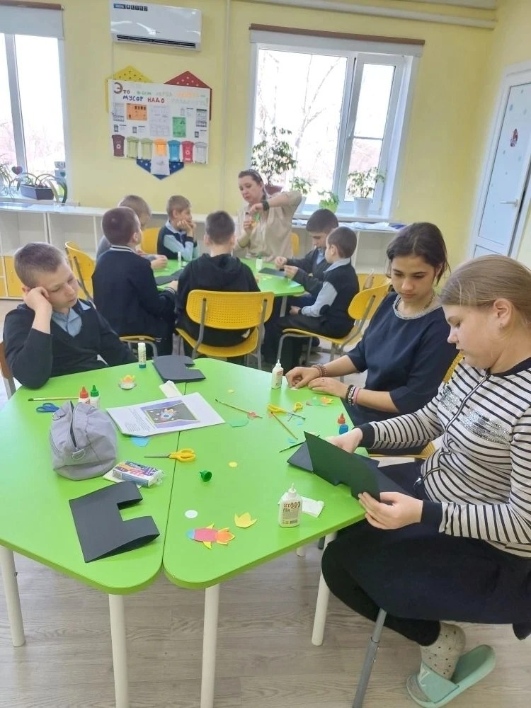 После теоретической части школьников ждал творческий мастер-класс. Дети с энтузиазмом мастерили открытки, вкладывая в них свои мечты о космосе и яркие весенние краски.